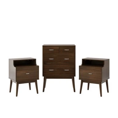 MID-CENTURY DESIGN: Blending together iconic splayed legs with a stunning wood-like frame, our three-piece bedroom set offers a mid-century look to your space. With its clean lines and understated look, this set uses new materials to reimagine a traditional design.