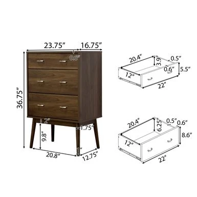 - 3 Drawer Dresser Dimensions: 16.75 inches deep x 23.75 inches wide x 36.75 inches high