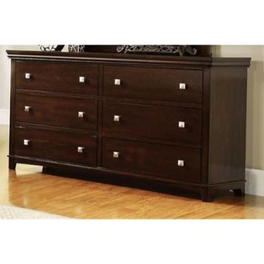 Add a touch of elegance to your home decor with this beautiful brown cherry transitional style wooden dresser. With its six spacious drawers, it offers ample storage for your essentials while its horizontal design adds an edgy touch to any space. Whether you place it in your bedroom or living area, this dresser is both beautiful and functional. Display your favorite photo frames or decorative pieces on top to complete the look. Dresser dimensions are 17 inches deep x 58 inches wide x 34 inches high.