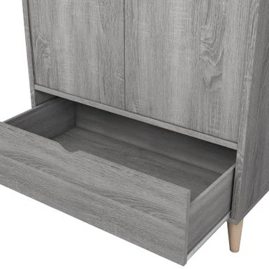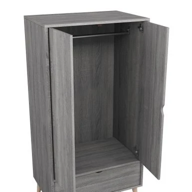 - Knobless double-door cabinet with clothes rack