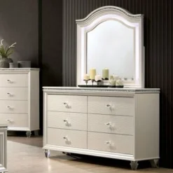 Allenby Contemporary Pearl White 55-inch Wide 6-Drawer Wood Dresser By Silver Orchid – Pearl White