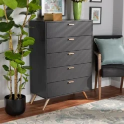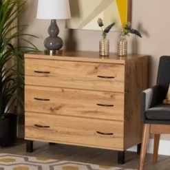 Baxton Studio Maison Modern And Contemporary Oak Brown Finish Wood 4-Drawer Storage Chest – 4-drawer