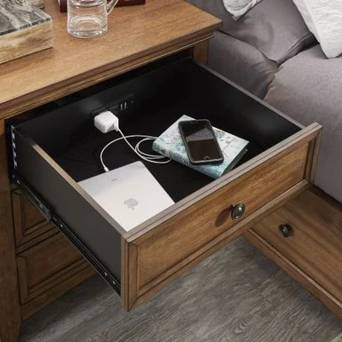 - Two (2) electrical outlets and two (2) USB ports built in to top drawer