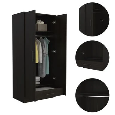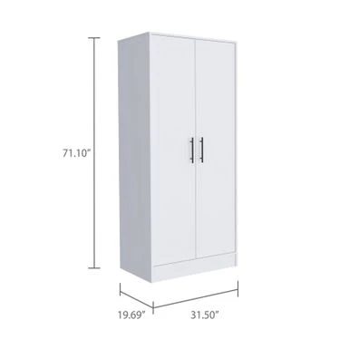 Add elegance and functionality to your bedroom or living space with the Rio 71-inch Tall Double Door Armoire. Available in light grey or white, this armoire features double doors that open to a spacious wardrobe with a top shelf for storing daily essentials. The sturdy closet rod is perfect for hanging delicate clothing and outerwear, while a bracket at the bottom is ideal for storing shoes. The armoire also includes a large 4.9″ tall drawer for storing bigger items. Built from high-quality materials and designed to last, this armoire is TSCA compliant and valid to be sold in the US, as well as FSC certified and CPSIA compliant.