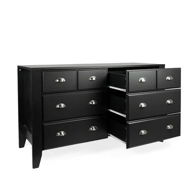 STORAGE SPACE: Featuring a double dresser with six drawers and two nightstands, each with one drawer, this set not only makes it easy to store your items but also offers a stylish appearance to your home. The drawers are finished with simple round knobs and bin pull handles for easy access to your items.