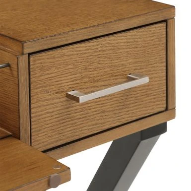 - Flip-top surface to reveal a mirror, a power strip, USB charging station, and three (3) interior compartments