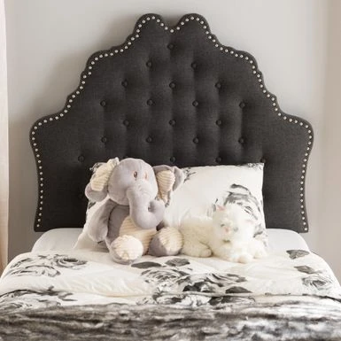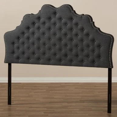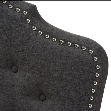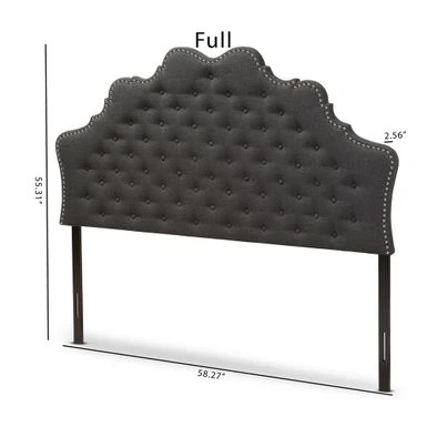 Complete your bedroom interior with the Farouk fabric upholstered headboard. Elevate your bedroom with the luxurious elegance of this upholstered headboard. Available in a dark or light grey to match your decor, the headboard boasts button tufting and nailhead trim for a vintage, glamorous flair. Foam padding and sturdy construction ensures lasting comfort.
