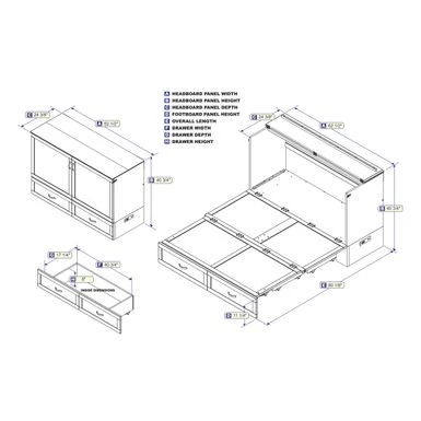 - Queen: 24.38″L x 62.5″W x 40.75″H