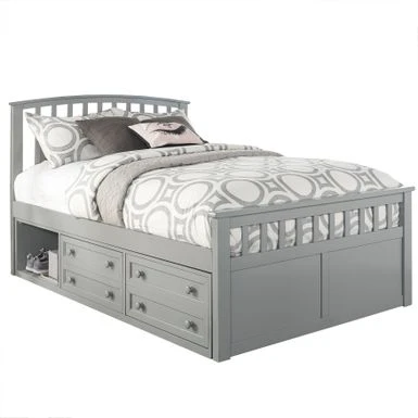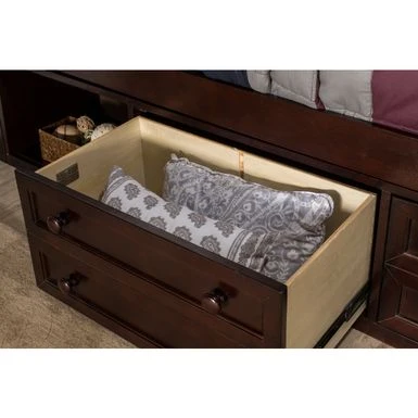 The Hillsdale Furniture Charlie Captains Storage Bed in Chocolate is a functional and stylish choice for any kid’s or teen’s room. With its enduring Mission design, versatile under-bed Captain’s Storage Unit, and exposed cubby storage, this full-size bed offers plenty of storage space to keep things organized. The bed is constructed with dovetail drawers and easy-glide ball bearing guides to ensure long-lasting durability. This bed is available in three finishes and is annually safety tested by a third party. Some assembly is required.