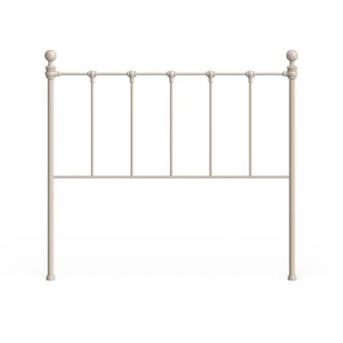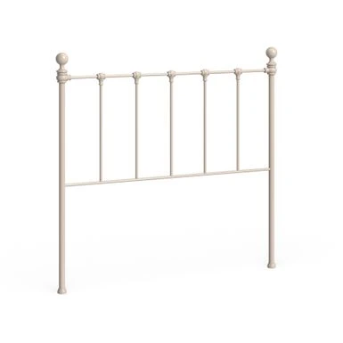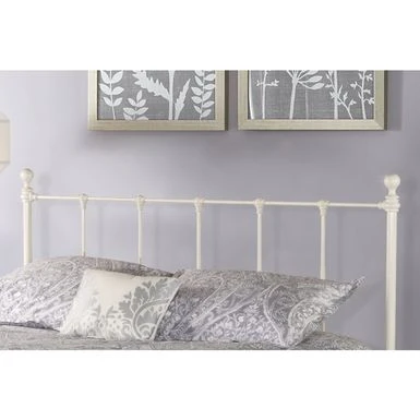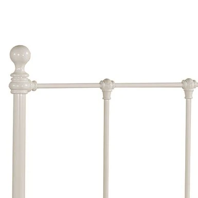 Add a touch of modern charm to your bedroom with the Hillsdale Molly metal headboard in white finish. This transitional headboard features a spindle styled design with round decorative finials, perfect for those who love classic Jenny Lind styles. The simple frame and classic white finish make it an easy addition to any room. Available in Twin, Full, and Queen sizes, this headboard is made from heavy gauge tubular steel and solid bar wire for durability. Assembly required.