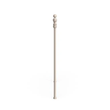 - Transitional spindle styled headboard with decorative finials and squared frame