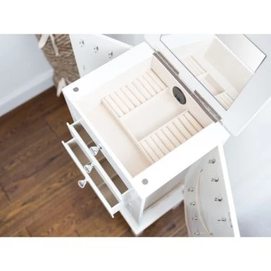 - Mirrored top lid with hidden compartment