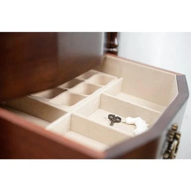 Curata Matte Cherry Finish Bubinga Veneer 1-Drawer Locking Wooden Jewelry Chest – Brown