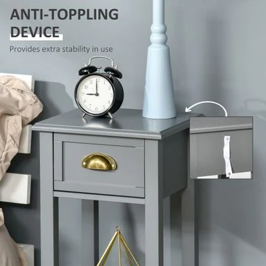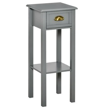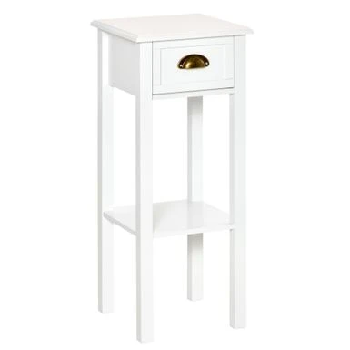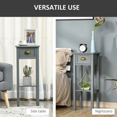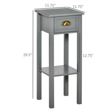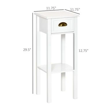 Add a touch of elegance while maximizing storage space with HOMCOM’s 2-Tier Night Stand with Drawer. This narrow end table is perfect for small spaces in your living room or bedroom. The open bottom shelf, drawer, and flat tabletop provide ample space to display decorative items or store everyday objects. Plus, the anti-toppling design and elevated base ensure extra stability and protection from water spills. Assembly is required.