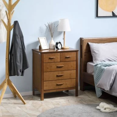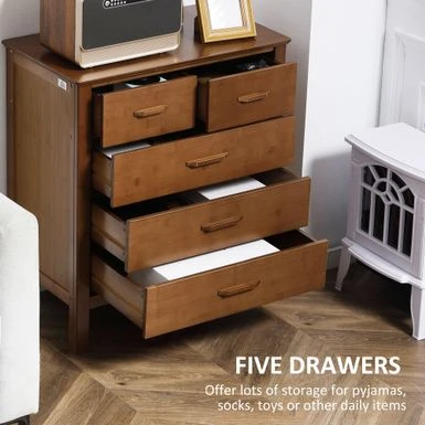 Are you looking for storage solutions and a decorative update for your bedroom? One way to add some style and organization is owning a new dresser. It features storage drawers for plenty of storage – a must for keeping clothes together in the bedroom. All of them are fitted with handles to open and close quickly. This chest of drawers is tough and made from natural bamboo and MDF board. Say goodbye to clutter with this HOMCOM dresser.