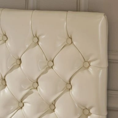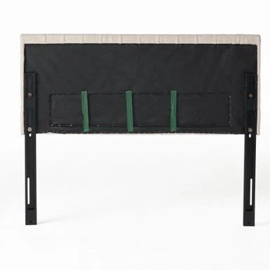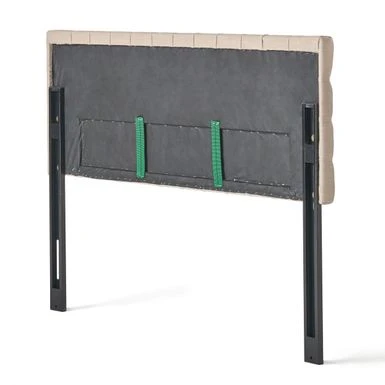 This beautiful headboard features a stylish design thatcreates a classy touch for your bedroom. This piece stands on blackiron legs and is available in light beige, ivory and sand colors,making it easy to match with other bedroom decor. For an expensivelook and feel, this headboard delivers excellent quality.