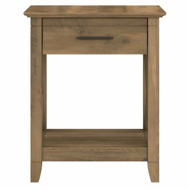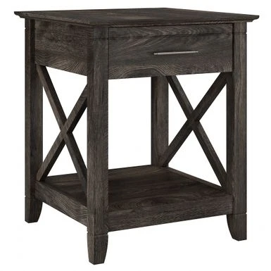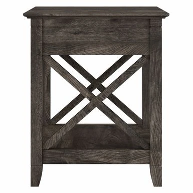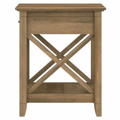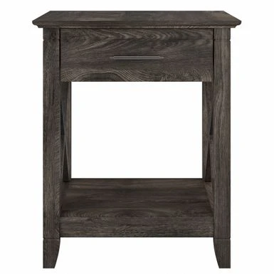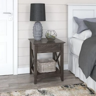 Add functional style to your bedroom with the Key West Coastal Box Drawer Nightstand by Bush Furniture. This nightstand offers ample storage space with a drawer and lower shelf, while the top surface is perfect for displaying your favorite items. Its unique X pattern accents and post leg design add a touch of elegance to any decor. Available in multiple finishes, this sturdy and rigorously tested nightstand is sure to meet your needs.
