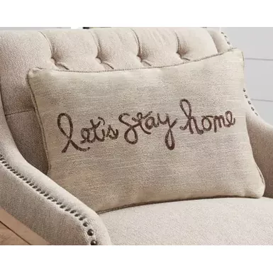 Calling all homebodies. If home is where your heart is, celebrate the sentiment in a beautiful way with the Let’s Stay Home scripted accent pillow. Its message of love is sure to look right at home in your abode.