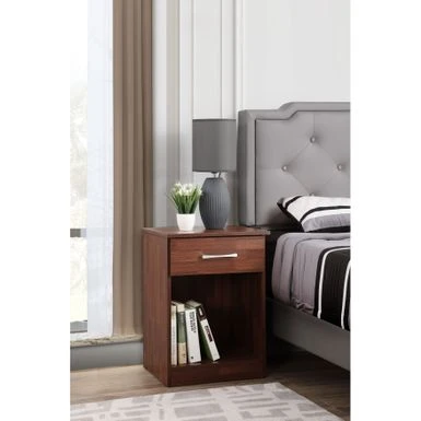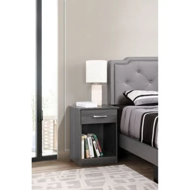 Introduce simple style to your bedroom with the Lindsey 1-drawer Nightstand by Glory Furniture. Designed to fit any home décor style, this nightstand provides extra storage space for your bedside essentials. The brushed finish hardware accents add a touch of elegance to the casual design, perfect for small spaces. This nightstand is easy to assemble and ships ready-to-assemble with step-by-step instructions.