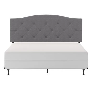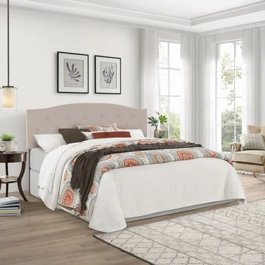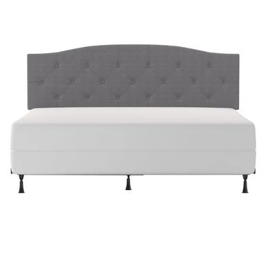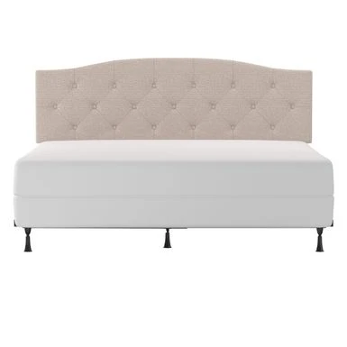 Traditional in style, this arched upholstered headboard will bring a touch of class and sophistication to any bedroom. The black wood finish on the legs perfectly complements the linen-colored fabric. Traditional in style, this arched upholstered headboard will bring a touch of class and sophistication to any bedroom. The black wood finish on the legs perfectly complements the linen-colored fabric. The true elegance can be found in the tufting as the arched diamond design is soft and pleasing to the eye. Box spring and mattress required; not included. Assembly required.