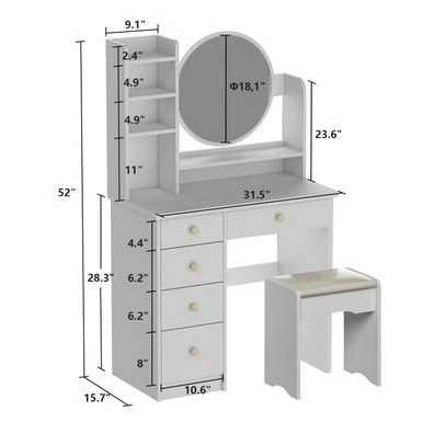 Stay organized with the 4 large drawers that offer ample storage space for all your cosmetics, jewelry, and hair accessories. From foundations to brushes, everything will have its place. The slim and sleek design of this vanity set not only adds elegance to your room but also provides even lighting and superior mirror reflection clarity, making it easier for you to achieve your desired look.