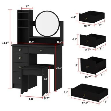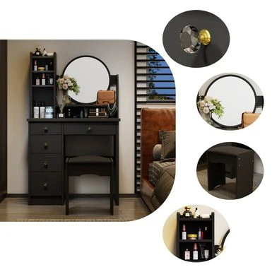 Choose between the classic white or charming black color options to match your personal style and existing decor. The set includes a comfortable stool and a mirror, making your morning routine effortless and enjoyable.