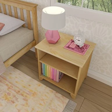 The Max & Lily Classic Wood Nightstand with Shelves is perfect for storing your kids bedside essentials while completing their bedroom in contemporary style. The knot-free, solid wood nightstand frame and shelves create a strong and sturdy design. The Max & Lily Classic Wood Nightstand with Shelves is perfect for storing your kids bedside essentials while completing their bedroom in contemporary style. The knot-free, solid wood nightstand frame and shelves create a strong and sturdy design. This wood nightstand features two shelves to organize and display your favorite items. This bedside table can also function as a bookcase or end table for even greater versatility. Made with non-toxic, low VOC finishes, this kids nightstand complements your clean and healthy home. This nightstand for kids measures 23 L x 17.50 W x 24 H. The interior of the top shelf measures 20 L x 16.25 W x 7.75 H. The interior of the bottom shelf measures 20 L x 16.25 W x 10.5 H. This modern nightstands clean lines and contemporary craftsmanship are the perfect match to your Max & Lily Classic bedroom set and other modern home furniture. The small nightstand includes easy-to-read instructions, tools and required hardware for a quick setup. The Classic Wood Nightstand with Shelves from Max & Lily offers exceptional quality and affordability that kids and their parents will enjoy for years to come. Max & Lily is a member of the Maxwood family of brands the kids furniture experts bringing a tradition of superior quality, safety and fun!