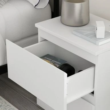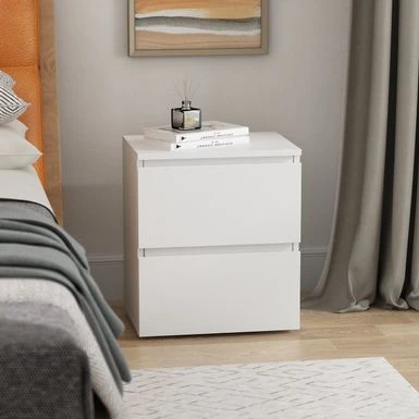 Scaled to fit any space in the home, Our 2 Drawer Nightstand is the perfect bedside companion providing storage for bed-time essentials. Two handle-free drawers provide plenty of storage, creating an essential piece for a well-dressed bedroom. The fade-resistant, clean surface creates soft edges for a clean, linear design and is easy to clean.