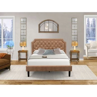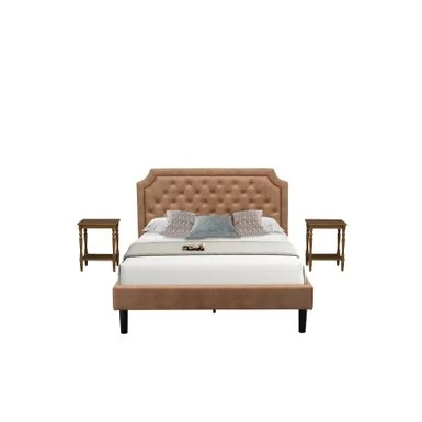 The gorgeous faux leather cushioned padding modern bed will make any bedroom lavish and comfortable to rest in. We are offering a 3-piece queen bedroom set which contains 1 Queen Size Wooden Bed Frame with a headboard as well as 2 eye-catching wood nightstands. This queen wood bed frame is great for traditional bedrooms and a unique twist to any modern setting. Our bedroom furniture set has end tables with traditional styling. Durable solid wood slats offer better support and less sagging for both inner-spring and foam mattresses. Our queen bedroom set is simple to clean along with a damped fabric because of its smooth finish. This button tufted bed can be simply assembled with the provided step-by-step assembly instruction and equipment pack.