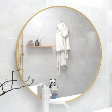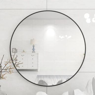 - This minimalist wall-mounted mirror instantly opens up any space in your home. This mirror is made of alloy metal and has a rounded profile. Its slim, clean-lined frame features a classic finish, with a floating circular glass panel design that provides excellent reflection, allowing light to bounce to expand your space.