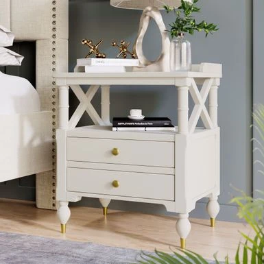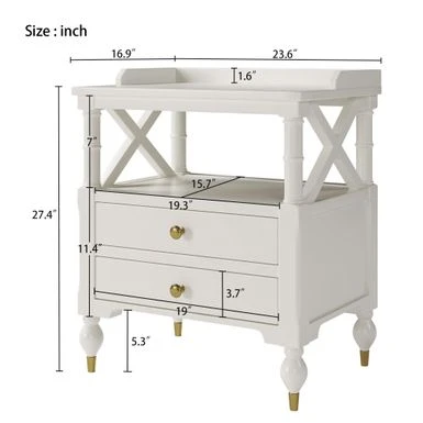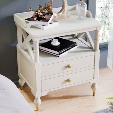 - Bring streamlined style to your bedside with this nightstand. This bedside table has a clean rectangular profile. The drawers slide smoothly, and two drawers provide unseen storage for bedside essentials, while the top surface of the nightstand provides the perfect platform for a phone charger and stylish light. Open shelves are a great place to put books. This bedside table adds a touch of chic aesthetics while providing a convenient storage solution for your bedroom, hallway, living room and more.