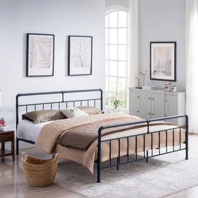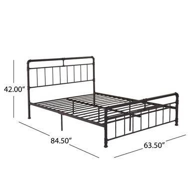 Item Description: Â Â Minimal and industrial, this iron full queen-size platform bed remains contemporary without coming across as sterile or boring. Its sleek lines, iron pipe frame, and accented fittings give it a rugged, unfinished look that is both adventurous and modern. Â