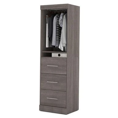 - Set includes: One (1) storage unit, one (1) door, two (2) clothing rods