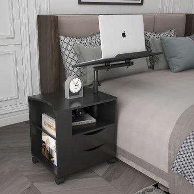 Use it as a nightstand, a laptop computer table, study desk, reading, writing, drawing or anything else that you could possibly think of. Its easy to move the table from one place to another. Product Material is E1pb. 2 drawers and open shelf provide large storage space.