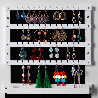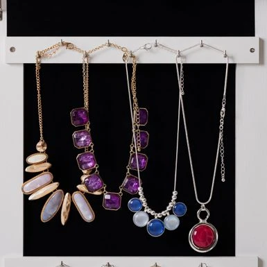 - Ample storage: includes 22 necklace hooks, 2 cubes, 3 lined shelves and a bracelet rod, and plenty of room for rings and earrings.