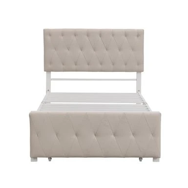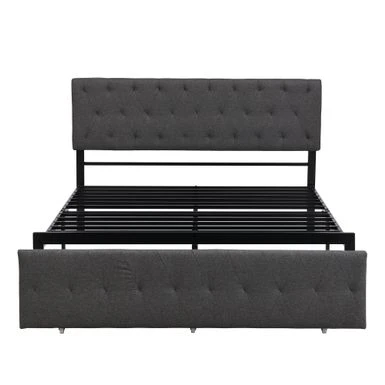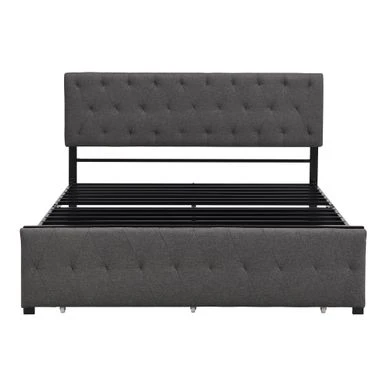 - Upholstered in carefully-selected linen fabric and with docorative details, this platform bed not only suits any home dcor, but is timeless in its design.