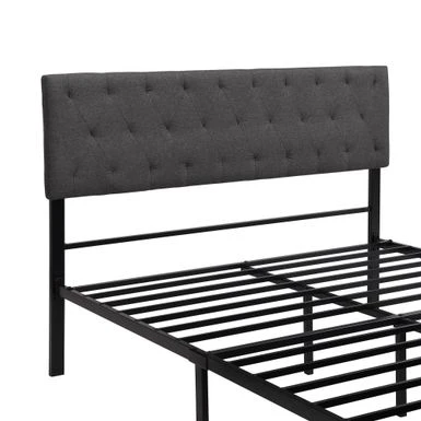 This beautiful Metal Platform Bed features upholstered headboard that adds a contemporary chic look to your bedroom and filled in thick foam to add extra comfort. Sturdy metal frame construction and a metal slat system to add extra stability and safety. With such a sturdy, on-trend design one would expect this bed to have a much higher price point, although in actual fact this piece aligns with our ethos of allowing customers the unique experience of shopping for curated pieces which capture the essence of what a living room or bedroom should be. Good design should be accessible to all.