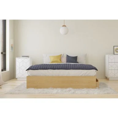 Nexera Albatros Storage Bedroom Set With Nightstand, Natural Maple And White – Full