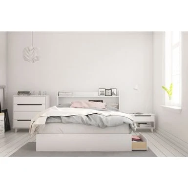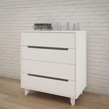 The Aura 4-drawer chest from Nexera is offered in white melamine with carved matte white drawer fronts and legs. It offers a stylish solution to store your clothes and personal belongings The Aura 4-drawer chest from Nexera is offered in white melamine with carved matte white drawer fronts and legs. It offers a stylish solution to store your clothes and personal belongings. 4 convenient storage drawers for you to keep your clothes and personal belongings 4 drawers on quality metal slides Signature drawer front and carved legs with white matte lacquer finish Matte white lacquer finish and white melamine