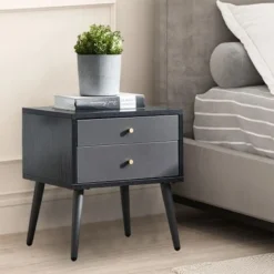 Nightstand With 2 Drawers, Suitable For Bedroom/Living Room/Side Table – Dark Gray – 2-drawer