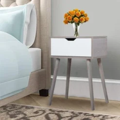 Burgoyne Mid-Century Modern Nightstand By Christopher Knight Home – Sonoma Gray Oak + Black
