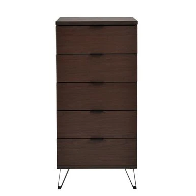 MODERN INDUSTRIAL: Our dresser incorporates sturdy iron legs with a rich wood-like finish to create an understated modern industrial design. Featuring flat hairpin legs, this dresser offers a chic aesthetic to any home.