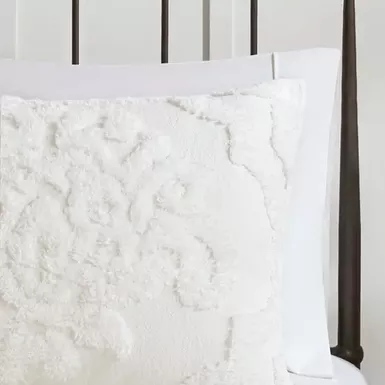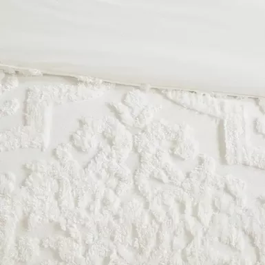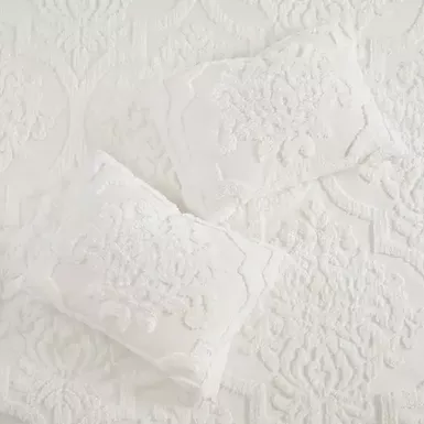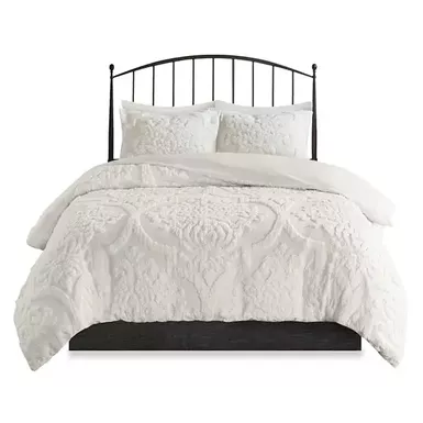 - Shabby chic, cotton chenille damask duvet cover set in white