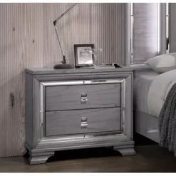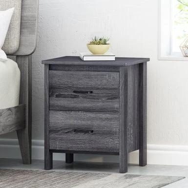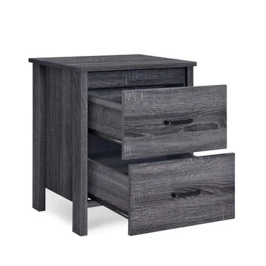 Spruce up your bedroom arrangement with a handsome accessory that will easily keep your necessities at hand. Featuring a smooth wood-like finish and a minimalistic structure, our exceptional nightstand brings a contemporary sophistication to any bedroom with its sleek look. This nightstand is completed with two drawers for plenty of storage space, giving you ample room and style to organize your items. Blending seamlessly with your existing decor, this streamlined nightstand will frame your bed with a simple yet refined charm. Â Â Â