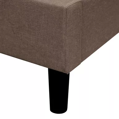 - The headboard features padded horizontal channel tufted lines