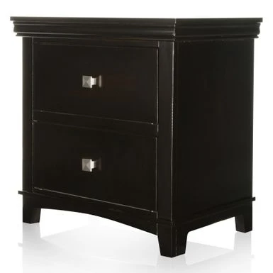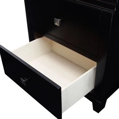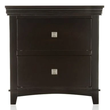 - Nightstand provides 2 drawers with silver tone pulls