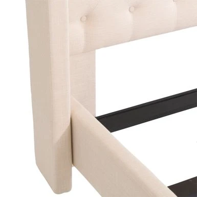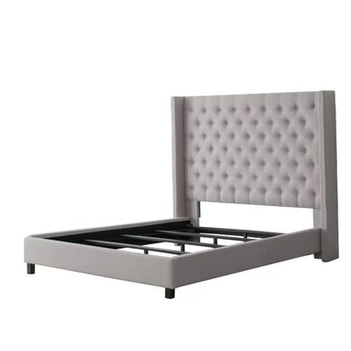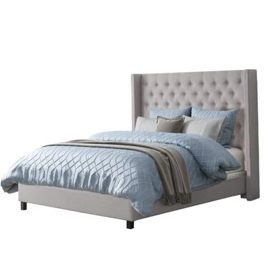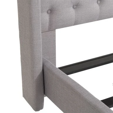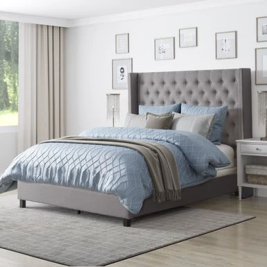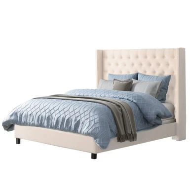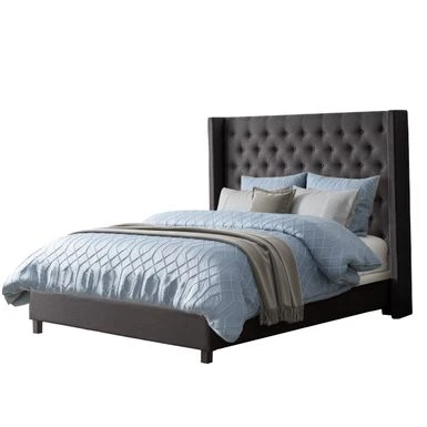 Transform your bedroom into a modern and sophisticated retreat with the Porch & Den Richwood Tufted Fabric Queen-size Bed with Wings. The stately wingback design and beautiful diamond patterned stitching create an elegant look that is sure to impress. This bed features handcrafted button tuft detailing, upgraded metal side rails, and support legs that provide extra stability, ensuring a comfortable sleep for years to come. The low profile footboard style adds a touch of contemporary flair to this classic design.