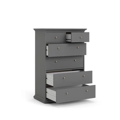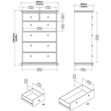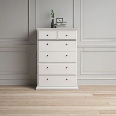 - Two small top drawers and four large bottom drawers provide ample storage