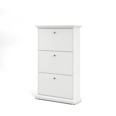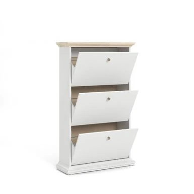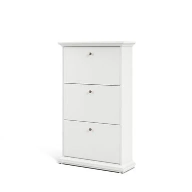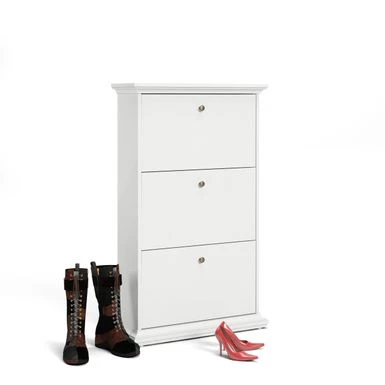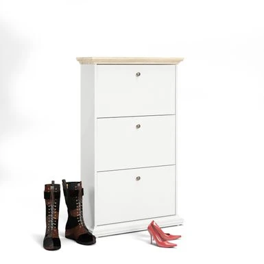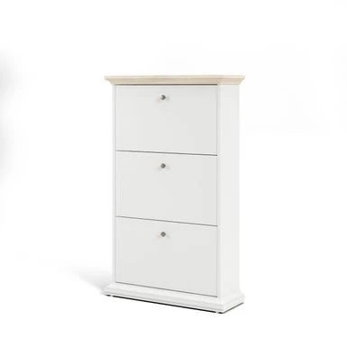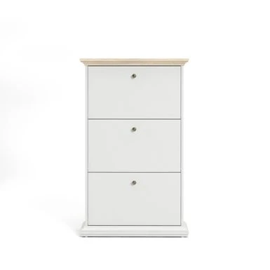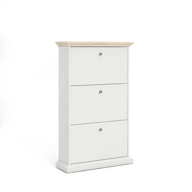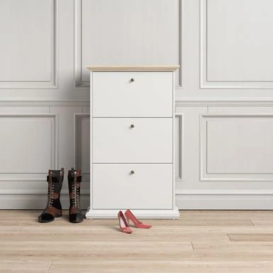 Tvilum Sonoma 3 Drawer Shoe Cabinet Fill your home with decorative storage when you place this cabinet in your home. Find a home for your family’s footwear with the Sonoma 3 Drawer Shoe Cabinet by Tvilum. This stylish space-saving shoe cabinet has three compartments, each holding two rows of shoes. Both functional and stylish, the 3 Drawer Shoe Cabinet will add classic style to your home while providing a space to organize and shoe shoes.