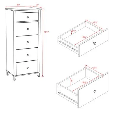 - Drawer Dimensions: 16.5 inches wide x 12.5 inches deep x 5 inches high